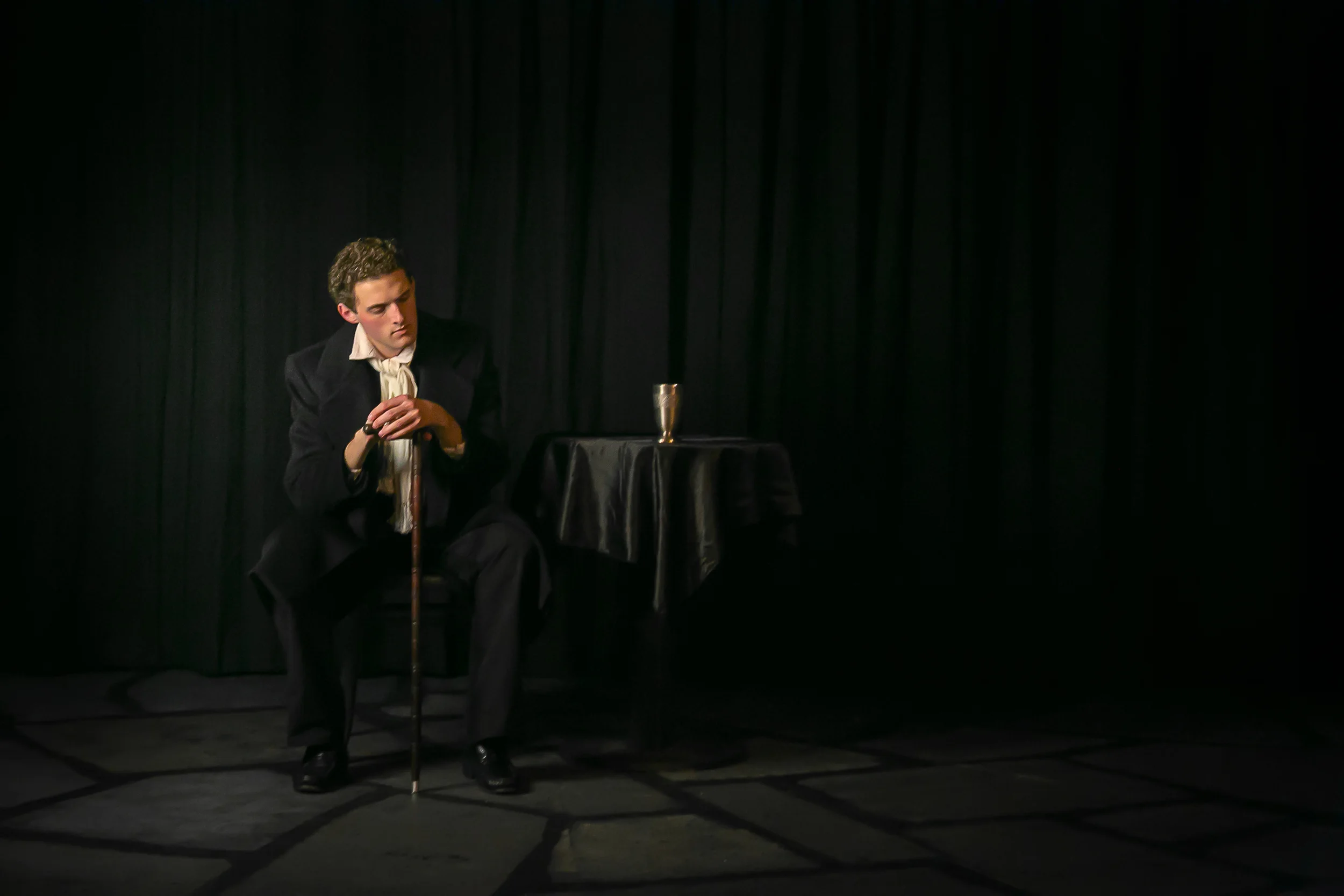 Rehearsal images are a great way to build excitement for an upcoming show. The sets are usually unfinished and there are plenty of tweaks remaining in the props, costumes and blocking but capturing the making of a show is a great "tease" for your patrons, potential patrons AND makes the show sponsors happy. I rarely show the images in full color and they're normally "grittier" than any of the other images. As lights usually aren't up yet either, the sets are quite dark anyways. That adds an extra challenge to the shooting ... but we have artistic and technical ways around that.